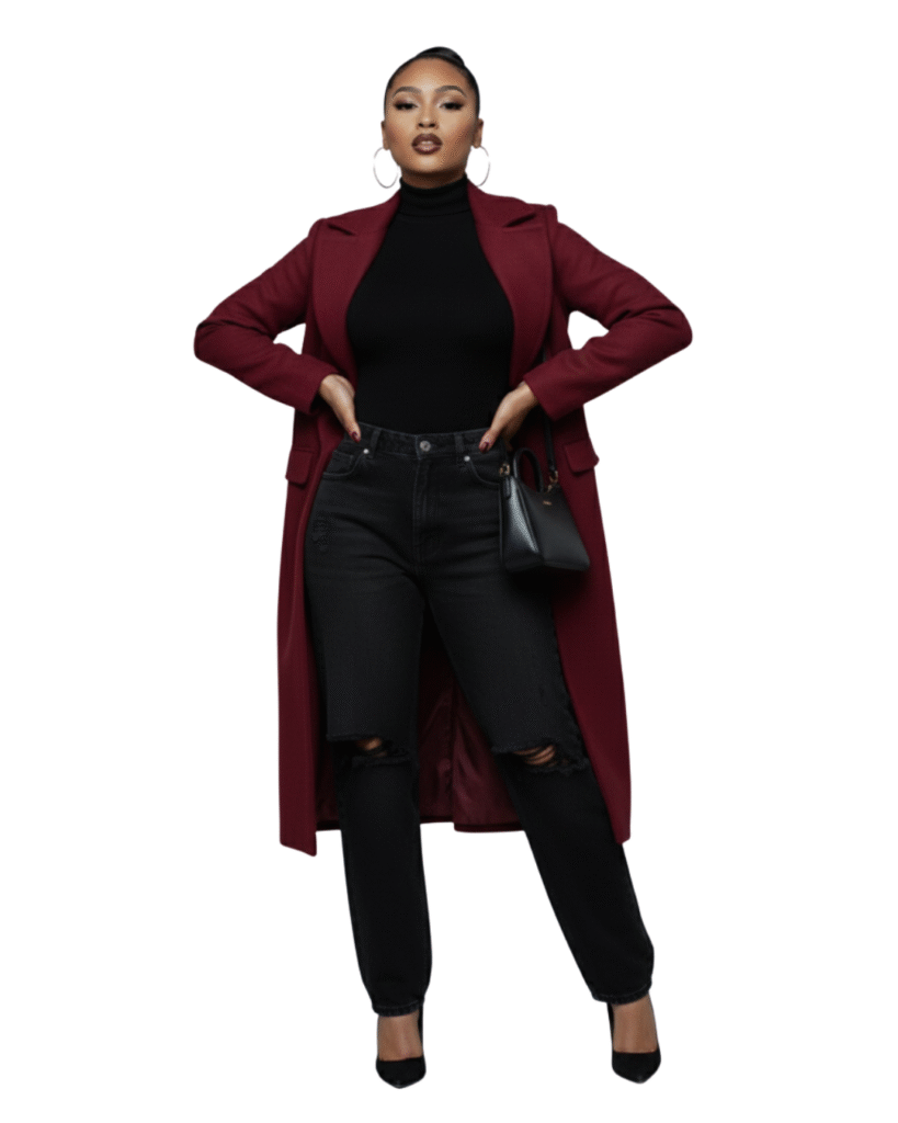 There’s something about a burgundy trench that just lifts an all-black outfit. It’s rich, bold, and adds the perfect pop of color without stealing the show. Throw one on when you want your look to feel polished but still effortless.